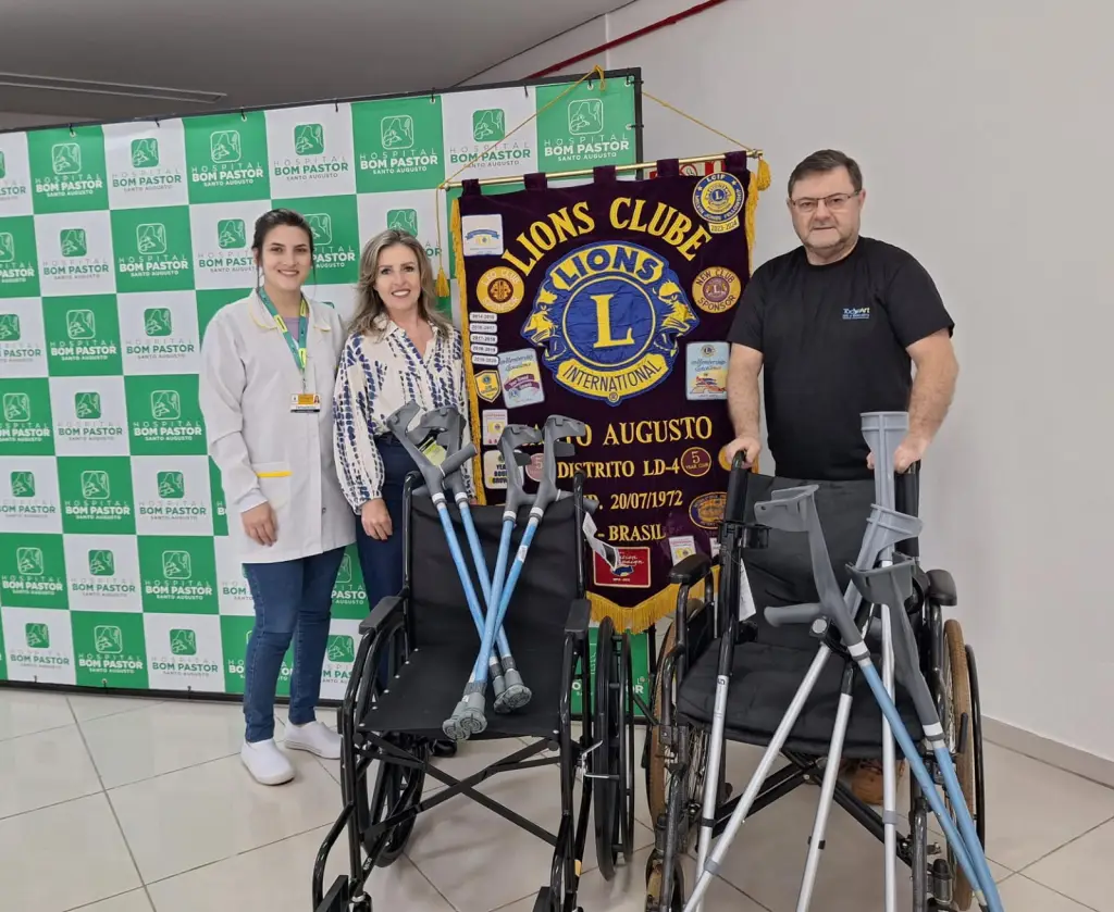 O Lions Clube de Santo Augusto realizou uma ação solidária significativa, doando 2 cadeiras de rodas e 5 pares de muletas para o Banco Ortopédico. Este projeto, que é uma colaboração com o Hospital Bom Pastor, reflete o compromisso da organização com a assistência à comunidade.